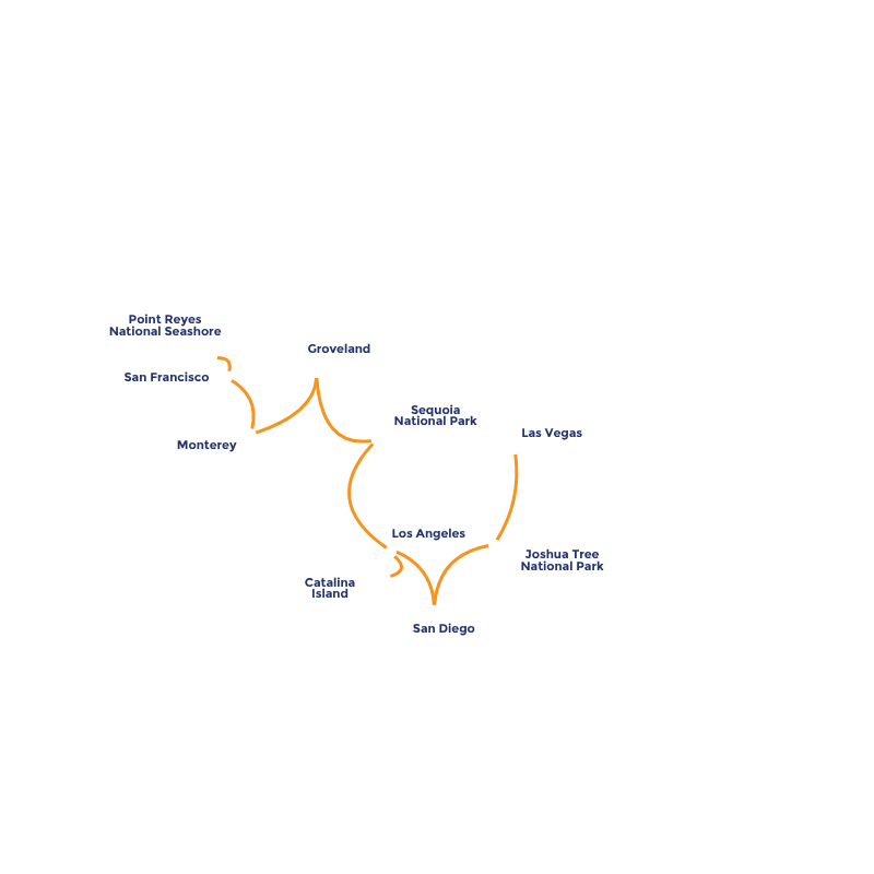 • Iconic cities: San Francisco, Los Angeles, San Diego and Las Vegas — each with its own energy, history and unique atmosphere.
