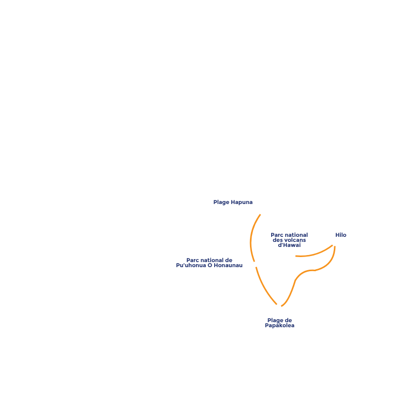 Journée d’exploration sur la côte est de l’île. Hilo, la ville la plus arrosée des États‑Unis, se distingue par son cadre luxuriant où jardins tropicaux, fougères géantes et cascades spectaculaires prospèrent. Entre les chutes d’Akaka, les marchés locaux animés et les tubes de lave façonnés par d’anciennes éruptions, la région révèle un contraste saisissant entre végétation dense et paysages volcaniques.
