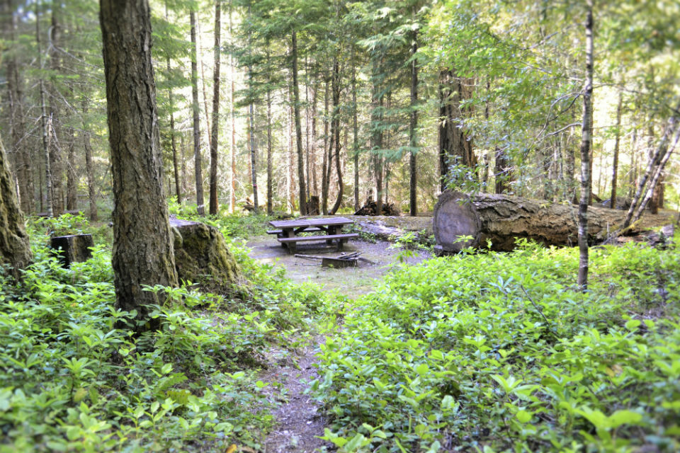 Camping pour un refuge paisible sous la canopée dense des épinettes de Sitka et des érables géants